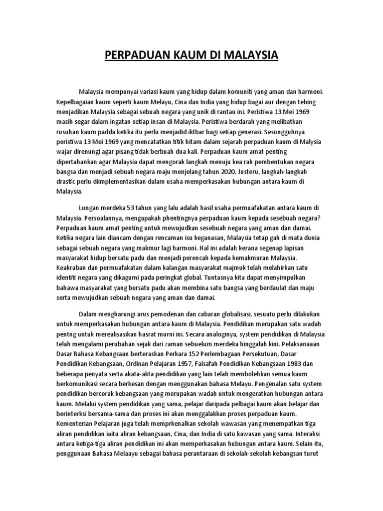 Perpaduan Kaum Di Malaysia Pdf