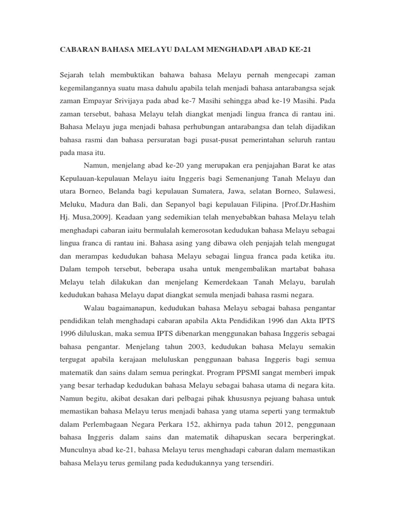 Cabaran Bahasa Melayu Dalam Menghadapi Abad Ke Pdf