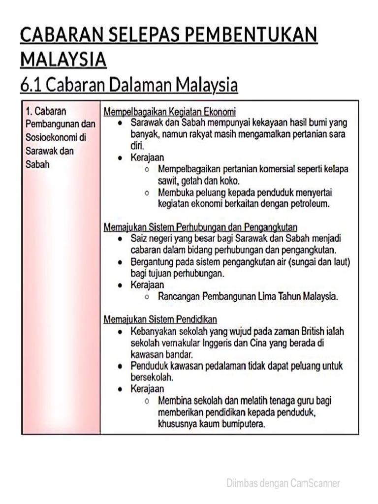 Nota Sejarah Tingkatan 5 Kssm Bab 6 Cabaran Selepas Pembentukan Malaysia Youtube