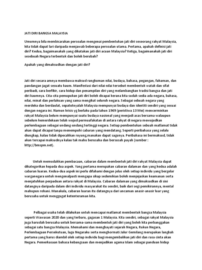 Jati diri masyarakat Malaysia teras kekuatan menghadapi arus globalisasi 2. Membentuk jati diri bangsa Malaysia. ISU jati diri dalam kalangan generasi muda hari ini kian menjadi kebimbangan masyarakat.