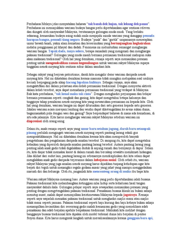 Manakala permainan laman pula seperti galah. Karangan kepentingan mengekalkan budaya warisan.