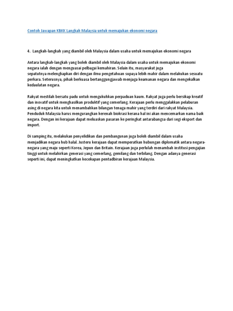 Contoh Jawapan Kbkk Langkah Malaysia Untuk Memajukan Ekonomi Negara Pdf