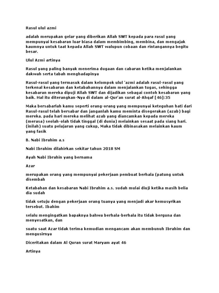 Di antara 25 rasul terdapat 5 orang rasul yang mendapatkan gelaran Ulul Azmi. Add to my workbooks 2 Add to Google Classroom Add to Microsoft Teams Share through Whatsapp. Namun pendapat yang paling kuat yang dipilih oleh beberapa ahli tafsir seperti Ibnu Abbas Mujahid Qatadah Ibnu Katsir Al Qurthubi Al Baghawi Asy Syinqithi dan yang lain sebagainya adalah bahwa Rasul Ulul Azmi itu ada lima orang.