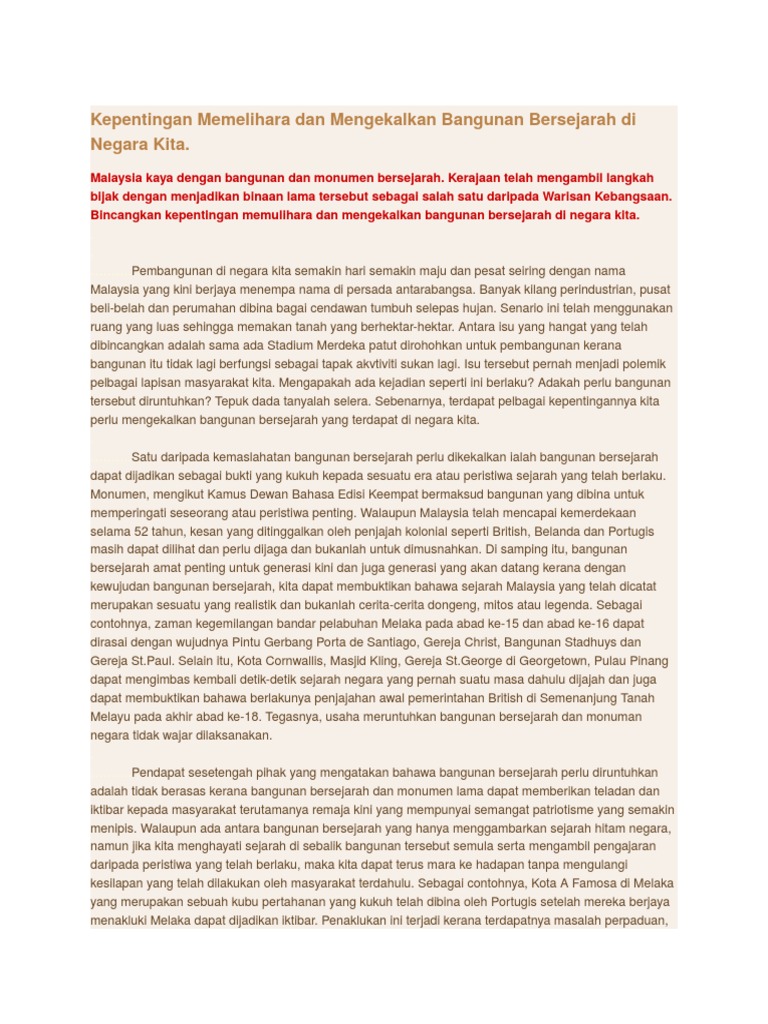 Kepentingan Memelihara Dan Mengekalkan Bangunan Bersejarah Di Negara Kita Pdf